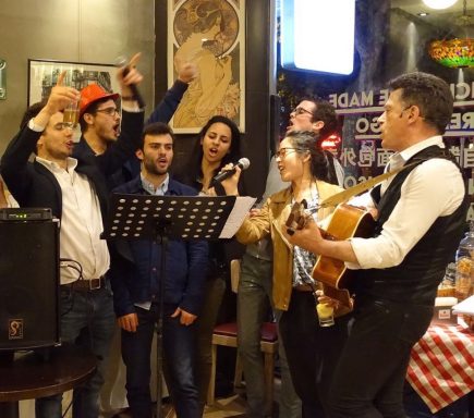 C'est le public qui fait le programme: vous choisissez un titre dans un répertoire de plus de 150 chansons françaises et anglaises des années 1970 à 2000 (environ).