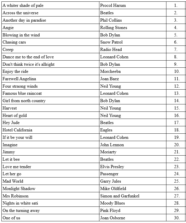 chansons anglaises 1